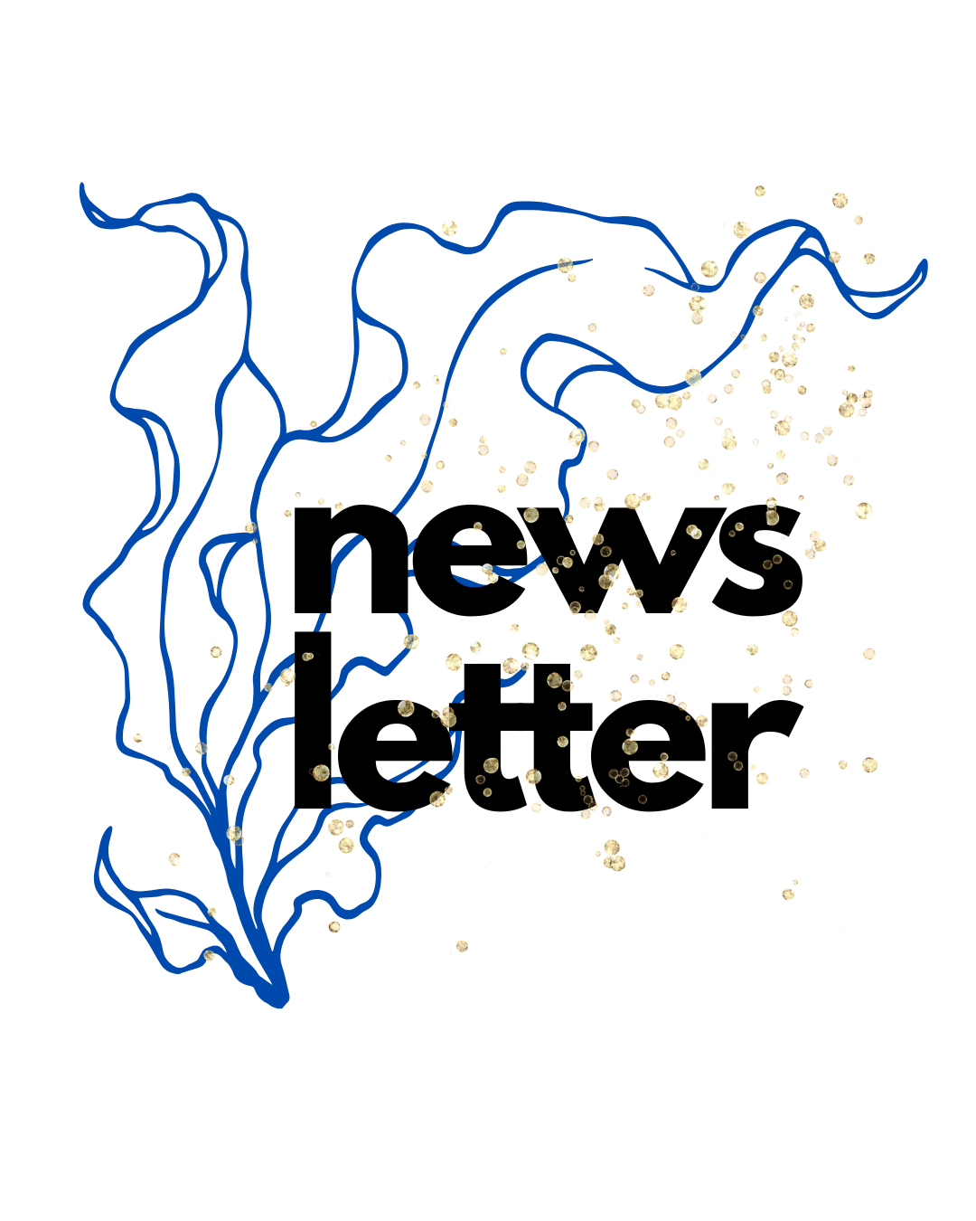 the word newsletter in front of waving blue seaweed - click it to access Chandra's newsletter