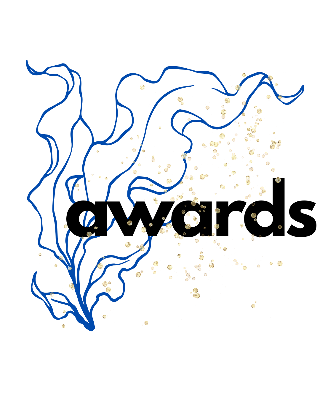 the word awards in front of waving blue seaweed - click it to read about Chandra's awards